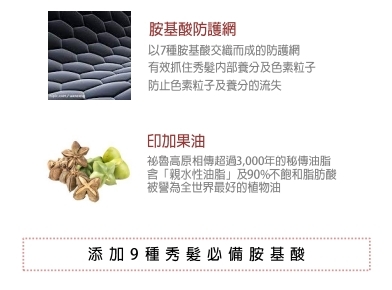 ◎ 不含矽靈,幫助頭髮補充7種染髮後易流失的胺基酸,深層修護頭髮受損